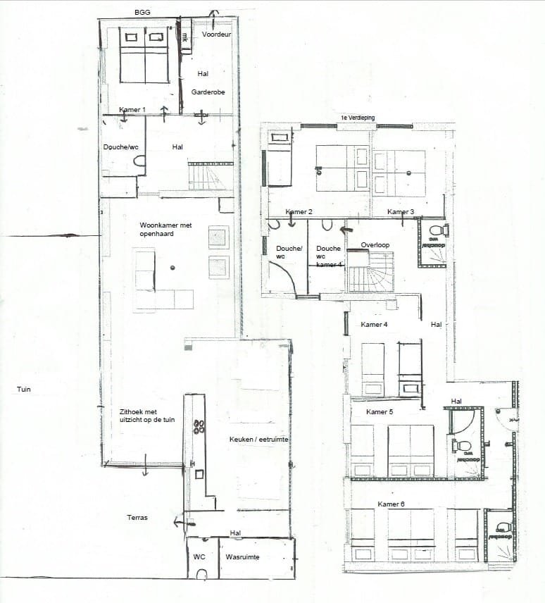 Totaal 6 slaapkamers voor 18 personen.