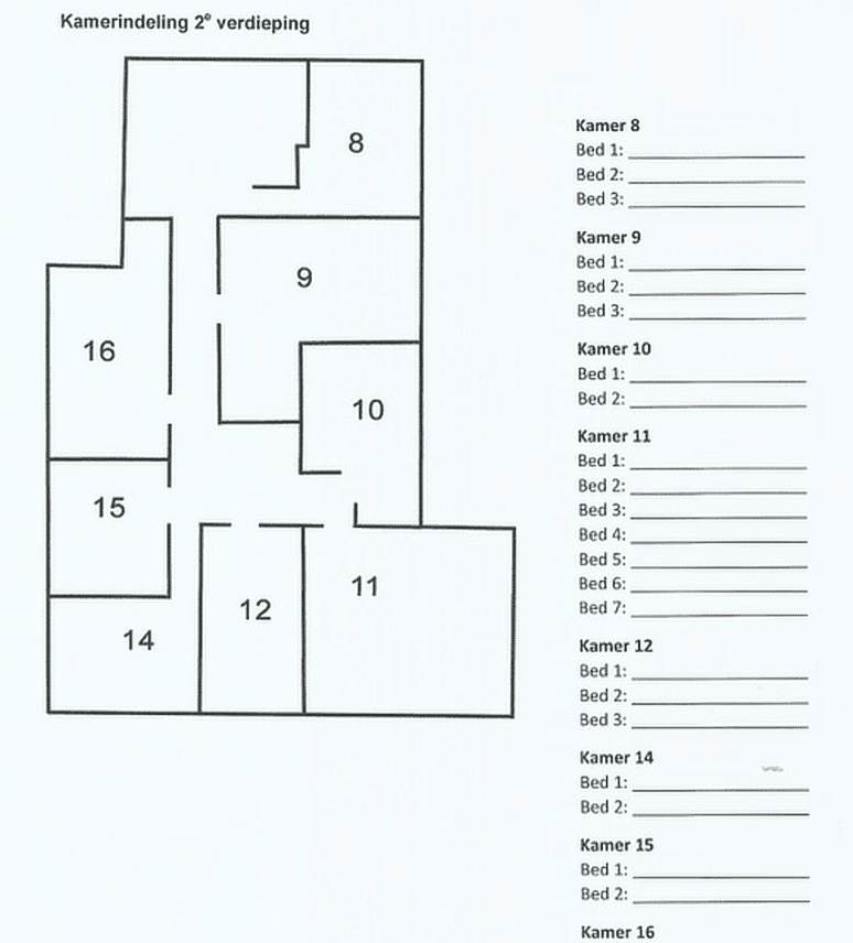 Kamerindeling voor 60 personen