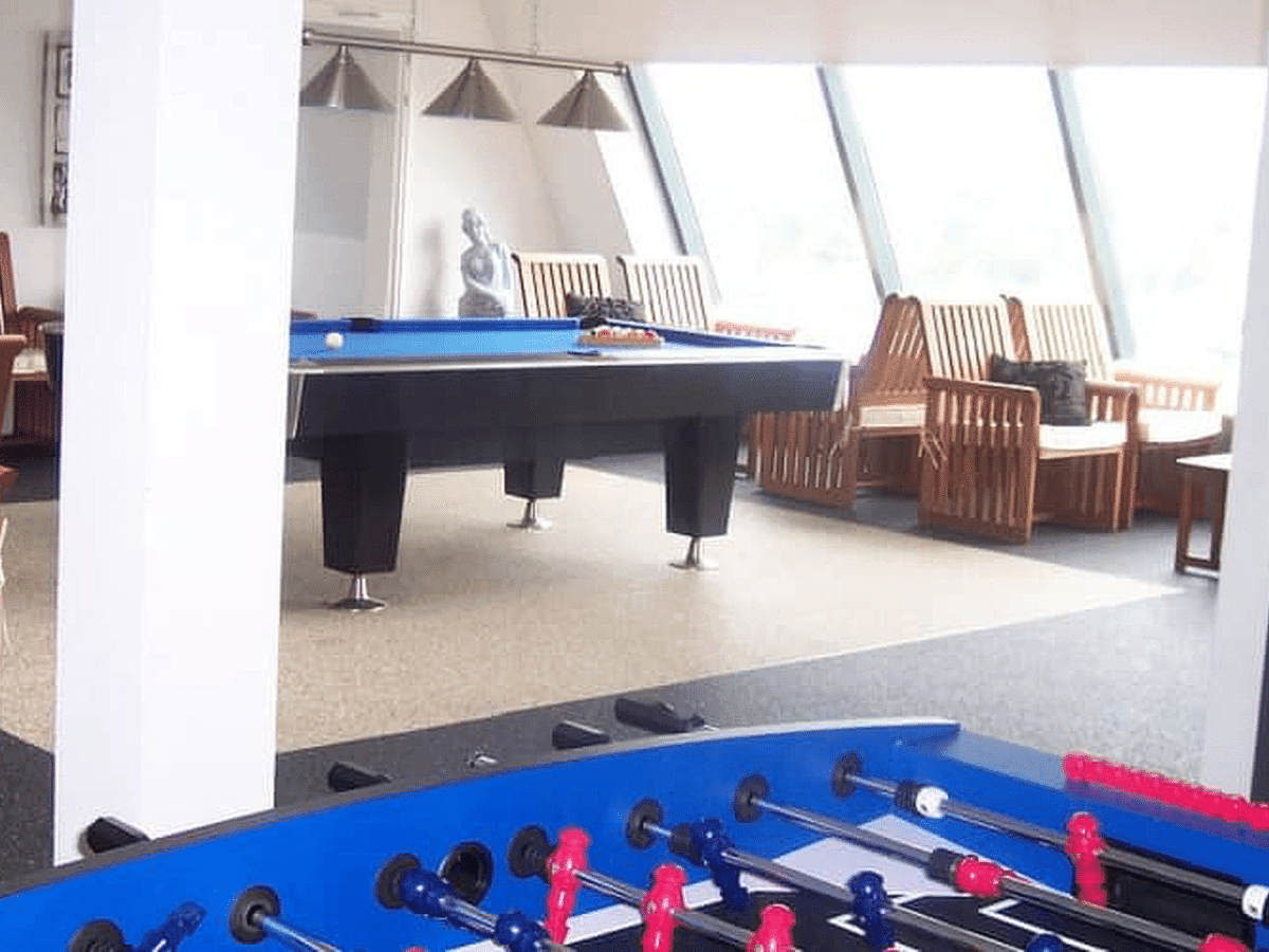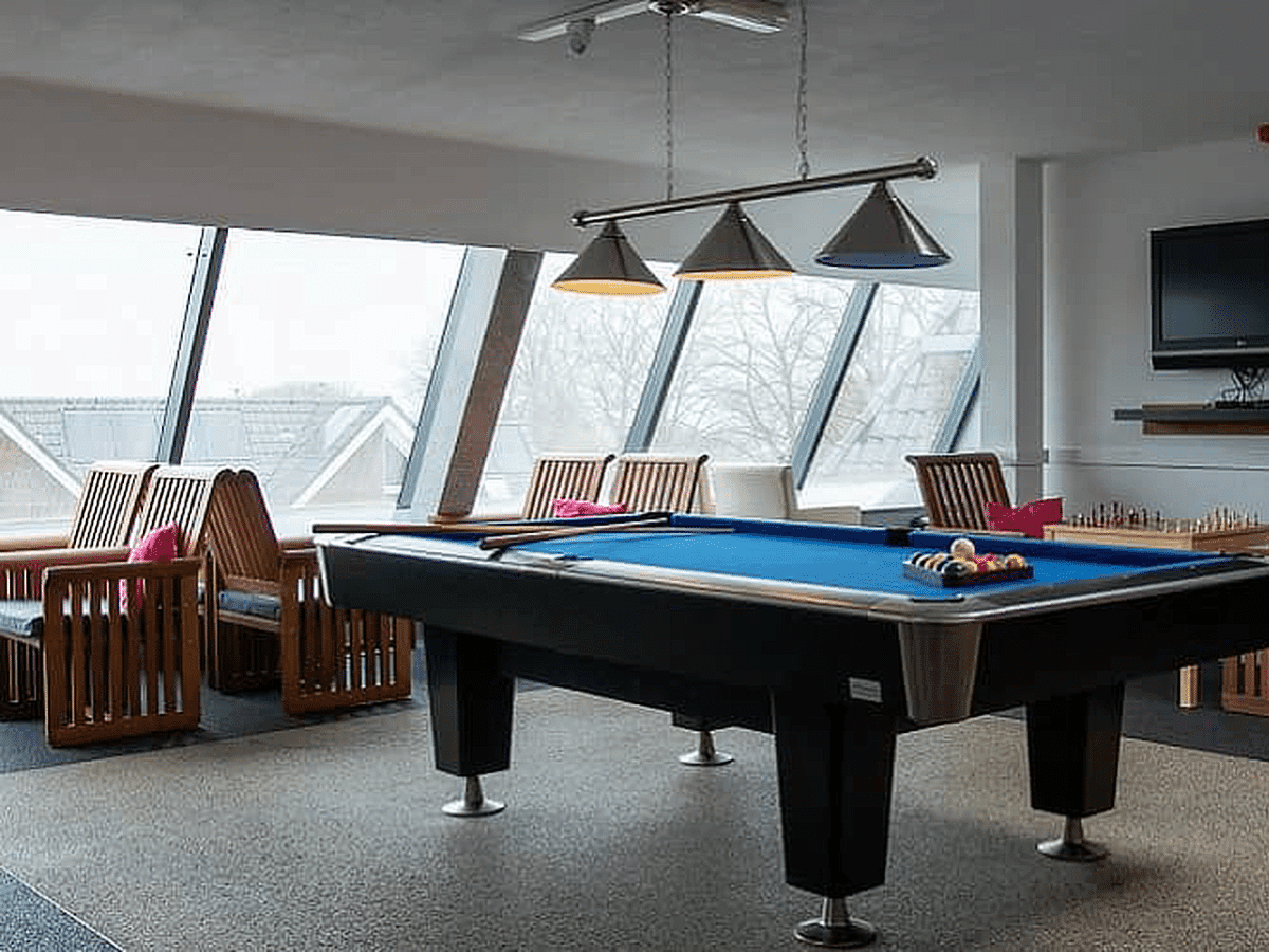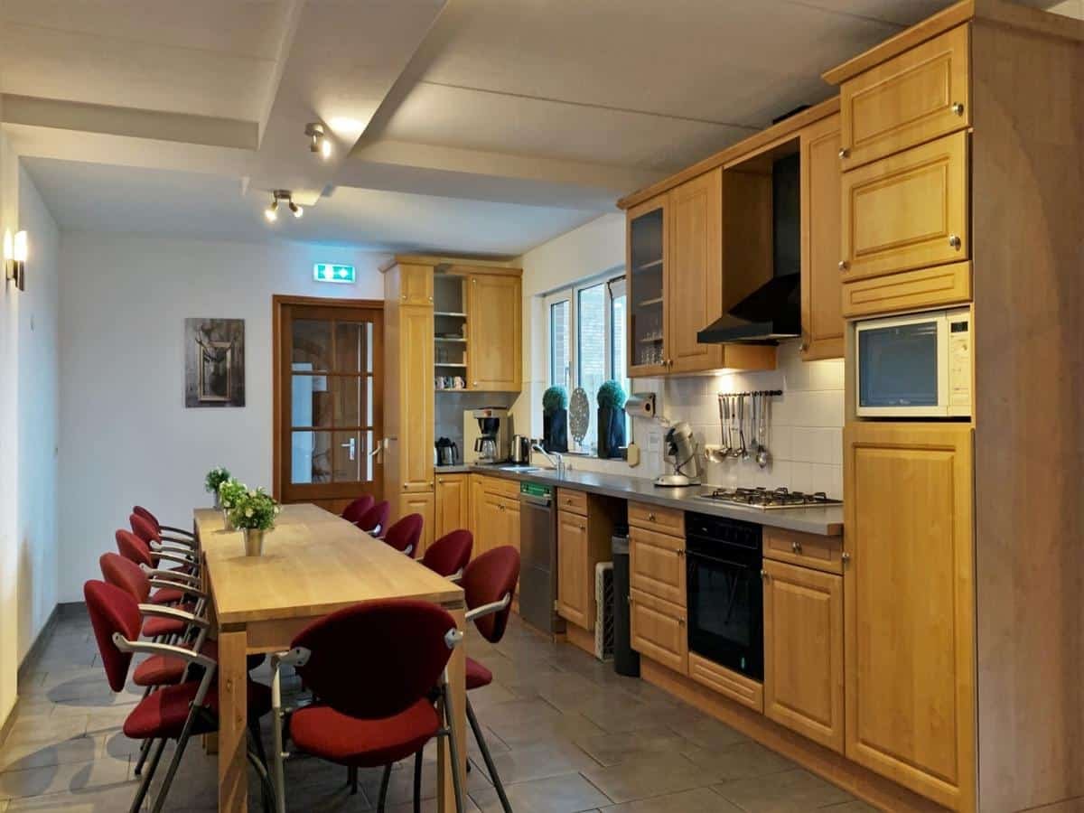 Op de tweede verdieping van deze groepsaccommodatie ligt een lounge met verschillende activiteiten voor groepen zoals een pooltafel. Wat deze ruimte echter uniek maakt is het schitterende uitzicht vanuit het panoramaraam. Je kijkt zo over de Zeven Heuvelen en landerijen.